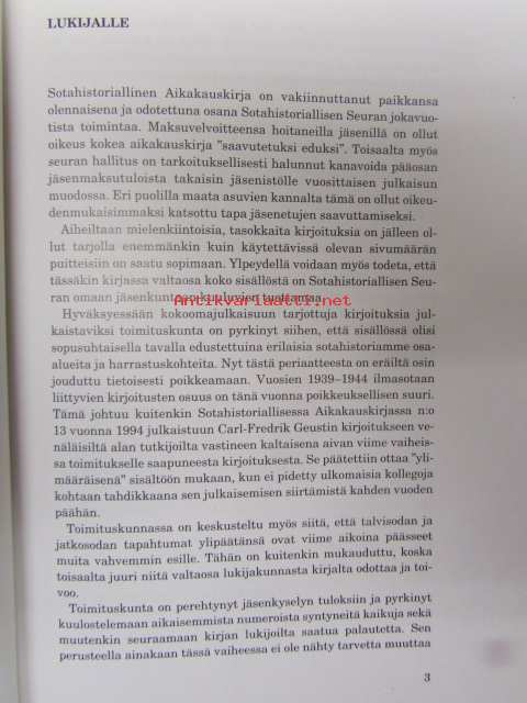 Sotahistoriallinen aikakauskirja 18 - sis. mm. Ilmavoimien erikoishuoltolaitokset, ilmailuvarikko ja ilmailukenttävarikot talvisodassa, ADD:n hyökkäykset Helsinkiin helmikuussa 1944. Katso tarkempi sisällysluettelo kuvasta.15 x 21 cm.