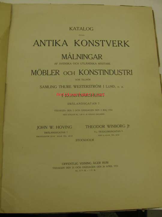 Antiquiteter målningar konstslöjd samling Thure Westersröm m.m.