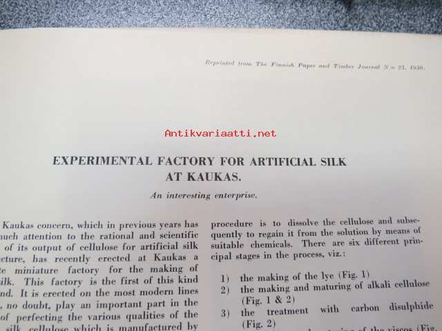 Kaukas försöksfabrik för konstsilke / Experimental factory for artificial silk at Kaukasspecial pulp covers -tehdasuudistuksen esittelyn eripainos, erikoiset