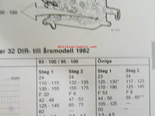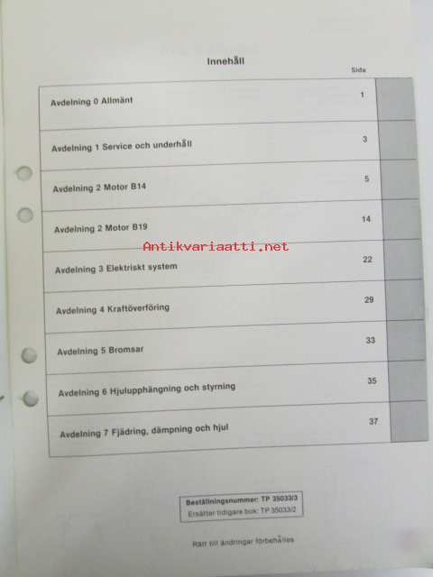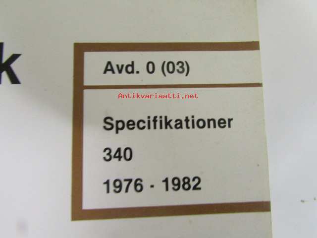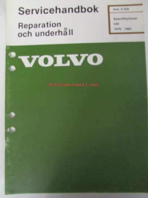 Volvo Servicehandbook - Reparation och underhåll Avd. 0 (03), Specitioner 340, 1976-1982