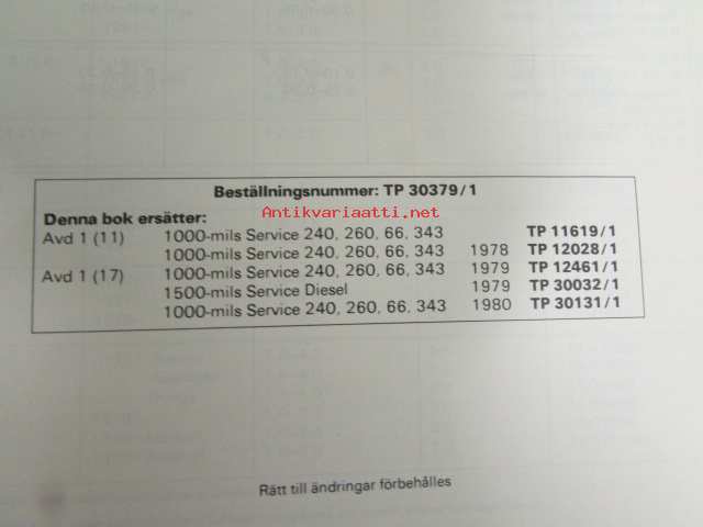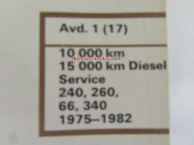 Volvo Servicehandbook - Reparation och underhåll Avd.1 (17), 10 000km 15 000 Diesel service, 240, 260, 66, 340, 1975 - 1982