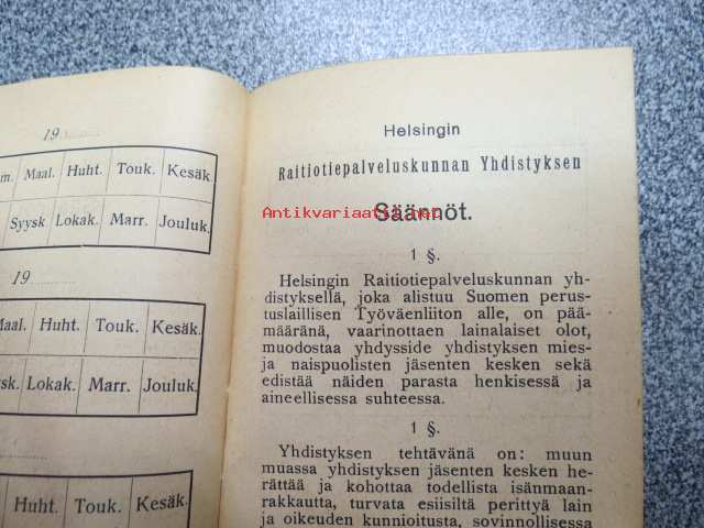 Helsingin Raitiotiepalveluskunnan Yhdistyksen jäsenkirja - Medlemsbok för Spårvägsmanna-Föreningen i Helsingfors -käyttämätön raitiotiemiesten yhdistyksen jäsenkirja, suomen- & ruotsinkielinen