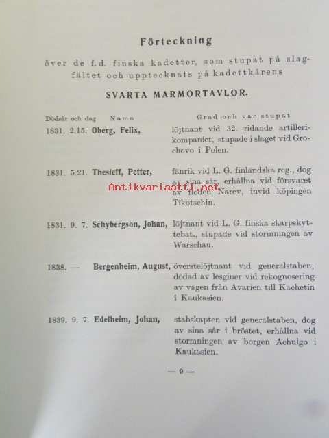 Finska kadettkårens elever och tjänstemän 1812-1960 Supplement II