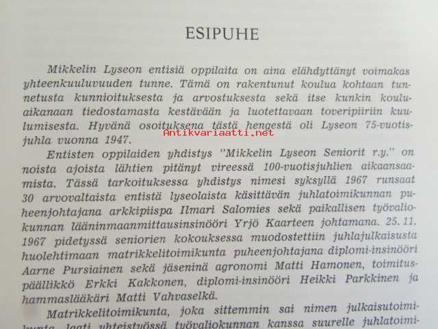 Mikkelin lyseo 1872-1972 (Ex library)