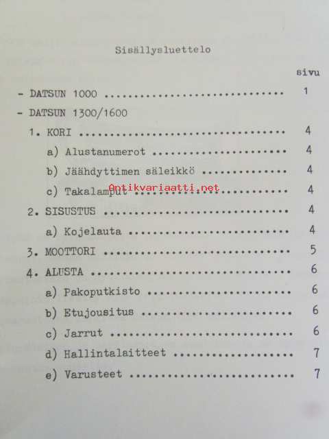 Datsun Nissan 1969 - 1000/1300/1600 Mallin muutokset