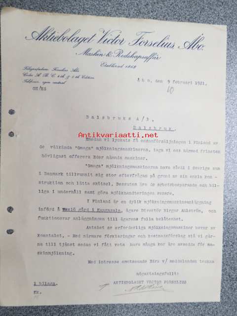 Ab Victor Forselius, Åbo, 9.2.1921 -asiakirja
