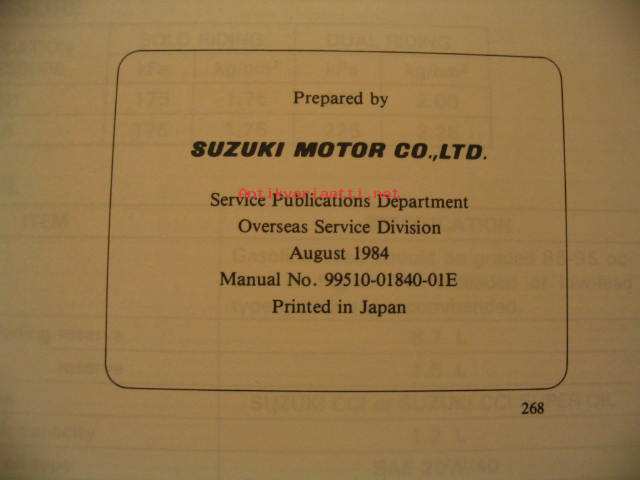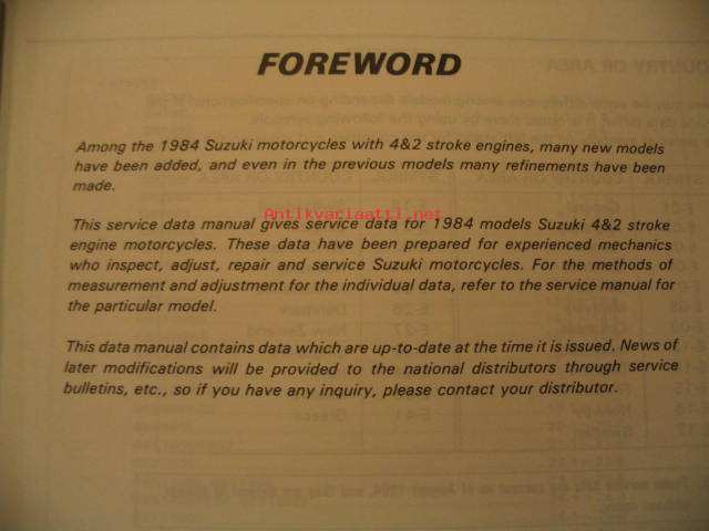 Suzuki 1984 4 & 2 stroke service data