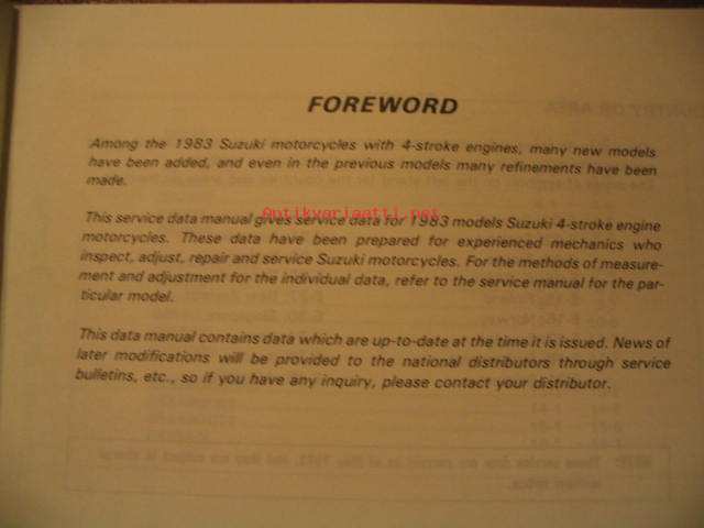 Suzuki Motor Cycles 1983 (2/2) 4-stroke service data