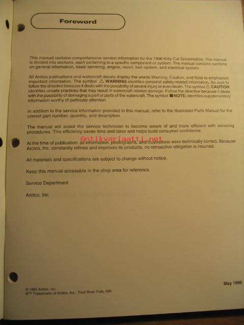 Arctic Cat 1996 Kitty Cat Service Manual moottorikelkka korjaamokäsikirja