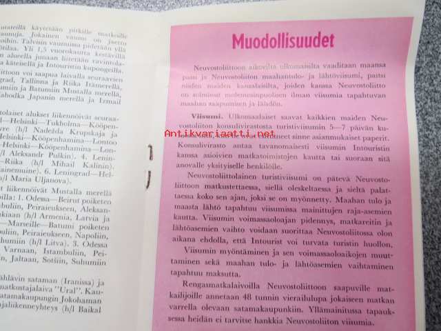 Intourist - Turistimatkat Neuvostoliittoon 1967 -esite