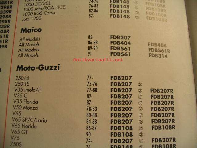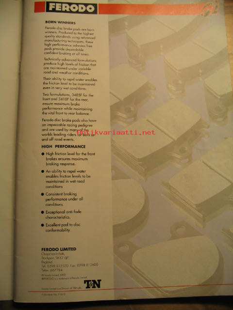 Ferodo disc brake pads motor cycles 1992 catalog jarrupalakuvasto