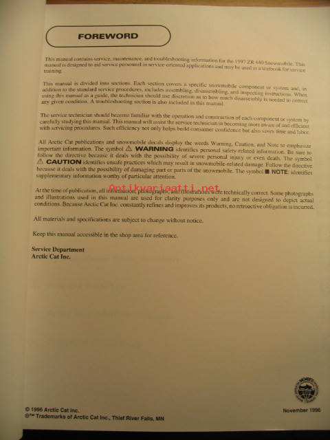 Arctic Cat 1997 Snowmobile ZR 440 Service Manual moottorikelkka korjaamokäsikirja