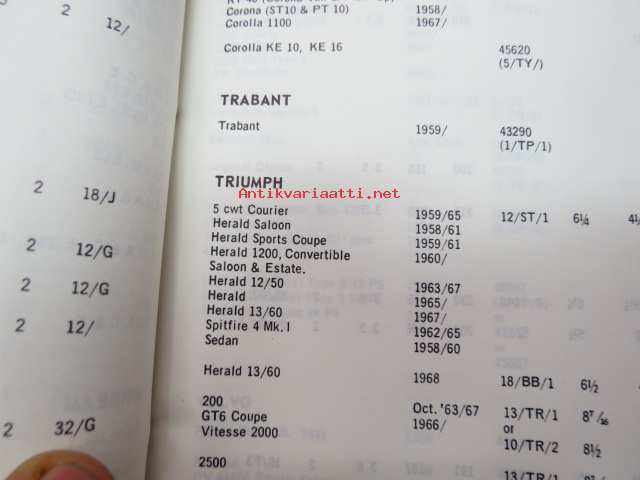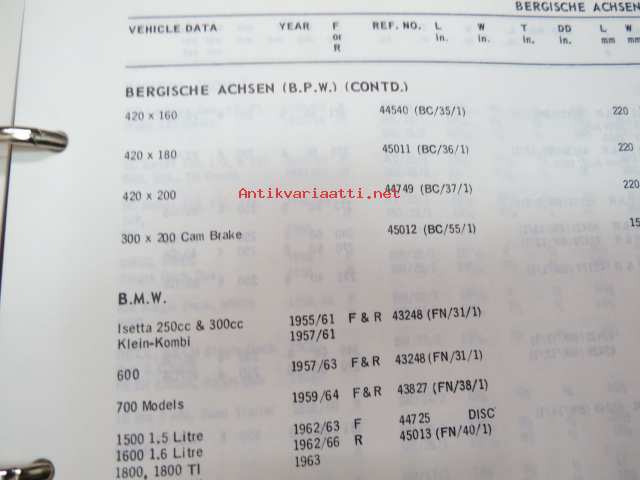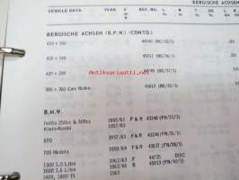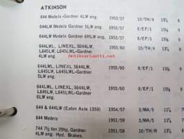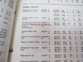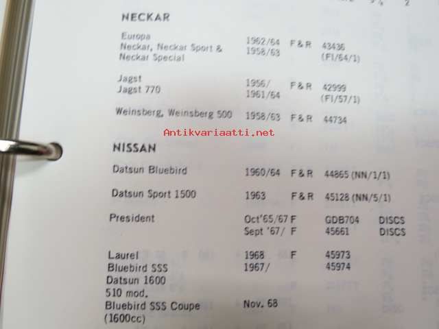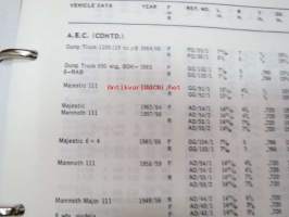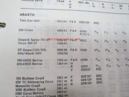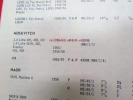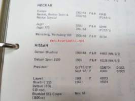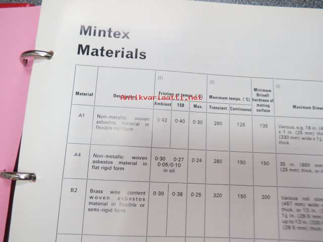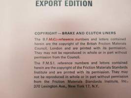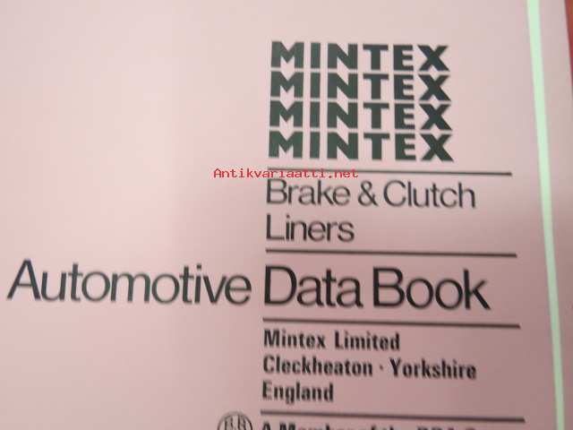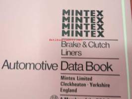Mintex Brake & Clutch liners Automotive data book -jarru- ja kytkinpintojen varaosaluettelo valmistajan merkkikohtaisine mitta- ym. tietoineen.