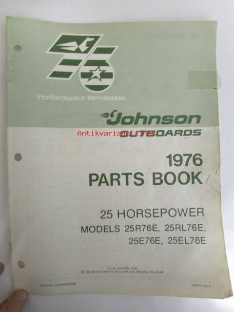 Johnson 25 hp 1976 Parts book models 25R76E, 25RL76E, 25E76E, 25EL76E