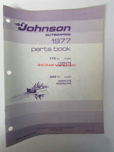 Johnson 175hp ja 200hp 1977 Parts book models 175 TL77S, 175TXL77S ja 200TL77C, 200TXL77C
