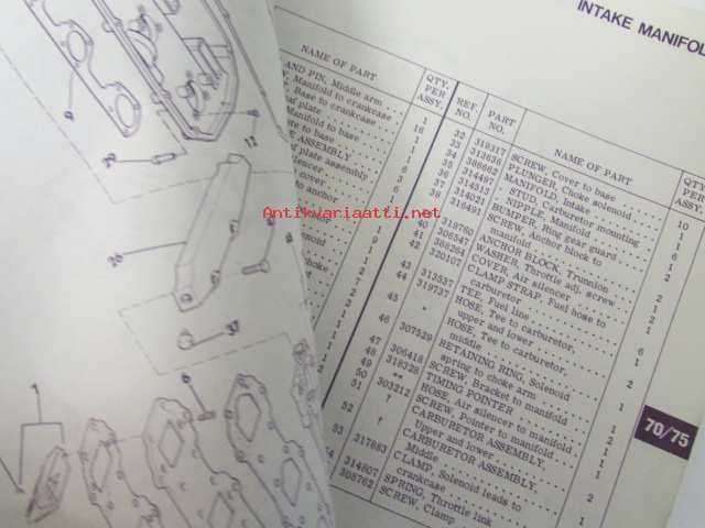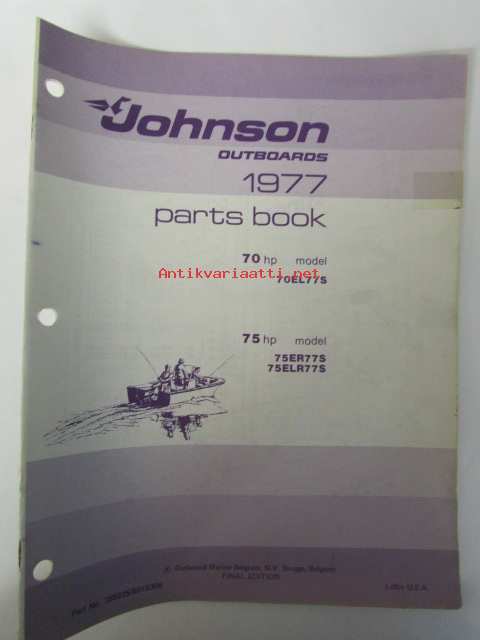 Johnson 70hp JA 75hp 1977 Parts book model 70EL77S, 75ER77S, 75ELR77S.