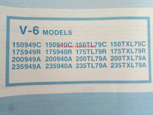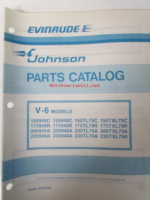 Johnson V-6 1979 Parts book models 150949C, 150940C, 150TL79C, 150TXL79C, 175949R, 175940R, 175TL79R,175TXL79R, 200949A, 200940A, 200TL79A, 200TXL79A, 235949A, 235TL79A235940A, 235TXL79A.