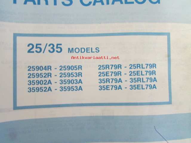 Johnson 25/35hp 1979 Parts book models 25904R-25905R, 25R79R-25RL79R, 25952R-25953R, 25E79R-29EL79, 35902A-35903A, 35952A-35953A, 35E79A-35EL79A.