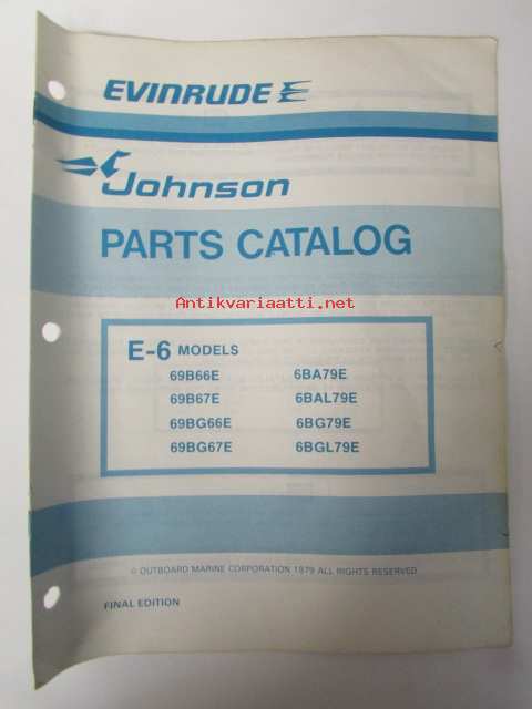 Johnson E-6 1979 Parts book models, katso tarkemmat mallimerkinnät kuvasta