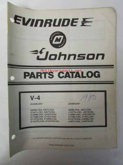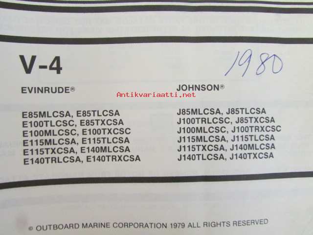 Johnson-Evinrude 1980 V-4 Parts catalog, katso tarkemmat mallimerkinnät kuvasta.