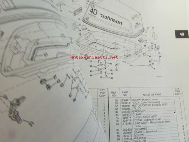 Johnson-Evinrude 1980 40hp Parts catalog, katso tarkemmat mallimerkinnät kuvasta.