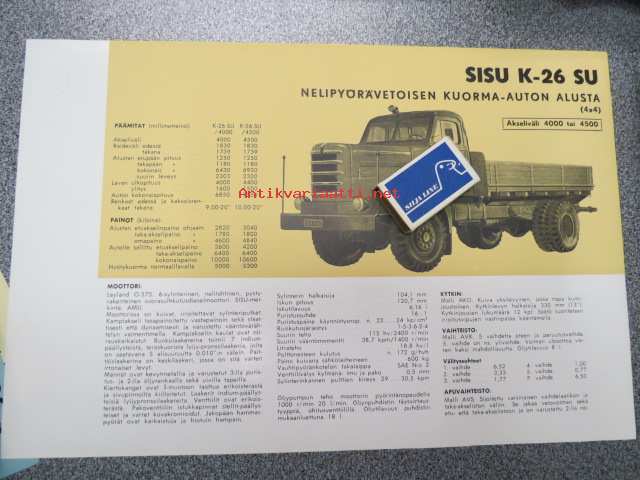 Sisu K-26 SU nelipyörävetoisen kuorma-auton alusta (4X4) akseliväli 4000 4500 -myyntiesite