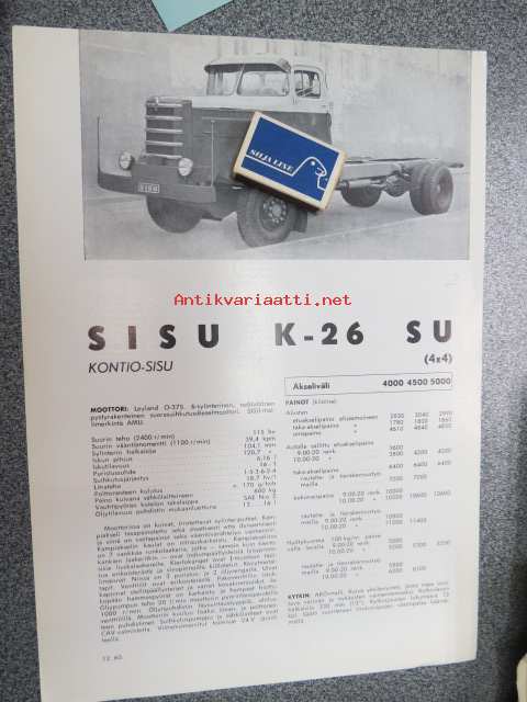 Sisu K-26 SU (4X4) Kontio-Sisu akseliväli 4000, 4500, 5000 -myyntiesite