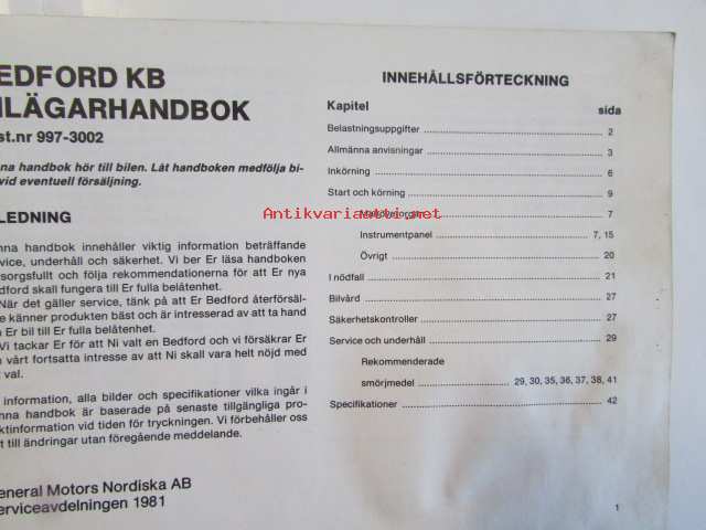 Bedford KB Ägarhandbok 1981