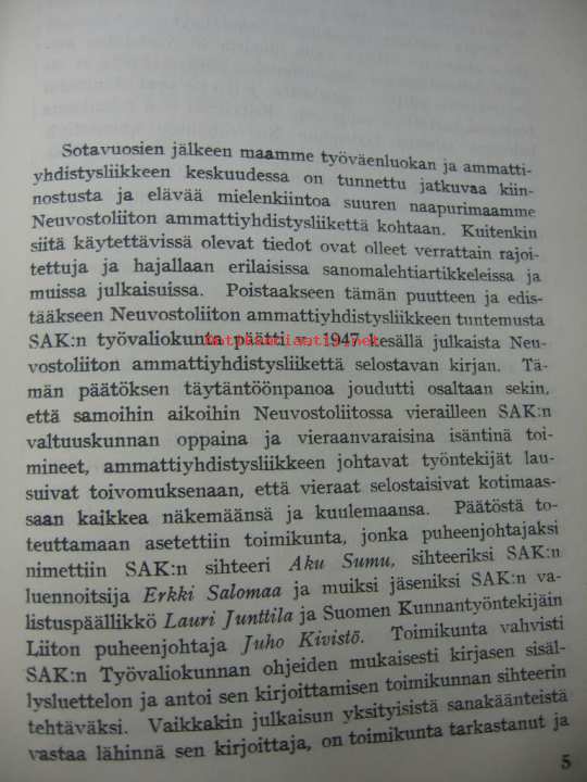 Neuvostoliiton ammattiyhdistysliike. SAK:n kustantama
