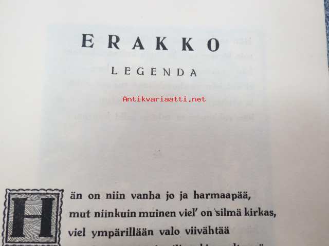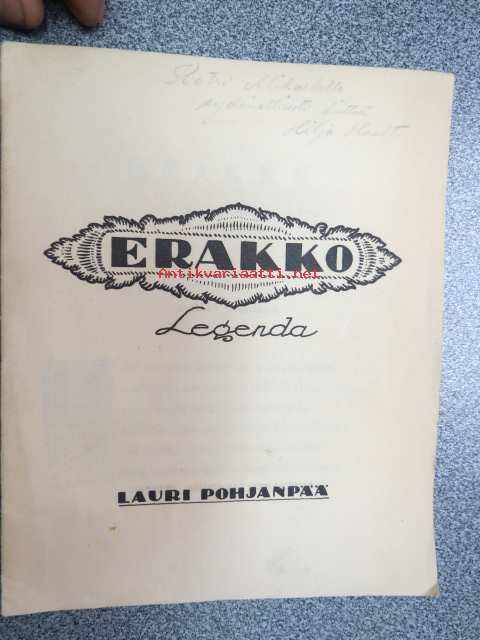 Erakko - Legenda (Lauri Pohjanpään runo, kuvittanut Oscar Furuhjelm), kannessa Hilja (Haahti) Haahden omakätinen omiste Katri Alikoskelle!