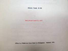 Tampereen kassakaappitehdas - Kaarlo Granath - Hintaluettelo kassakapeista 1909