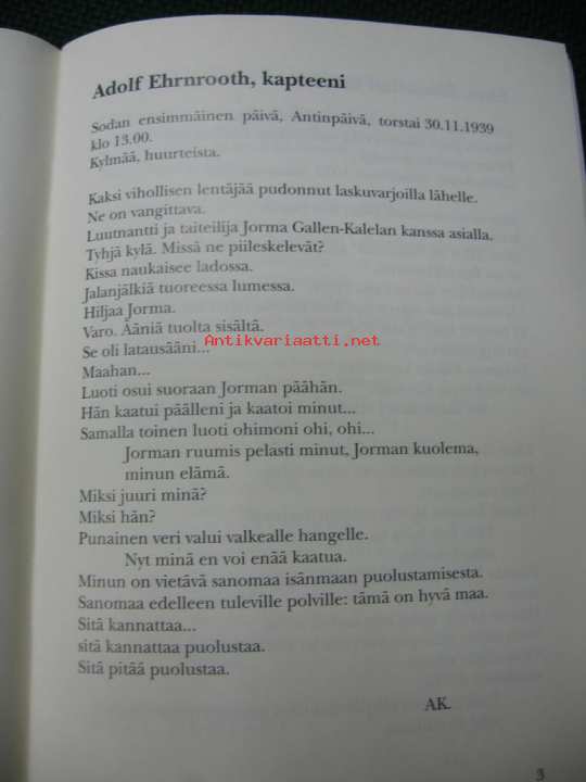 Ensimmäinen sivun mittainen tarina on Adolf Ehrnroothin kertomus 30.11.1939 miten läheltä vihollisen luoti meni...