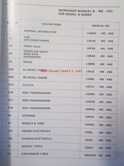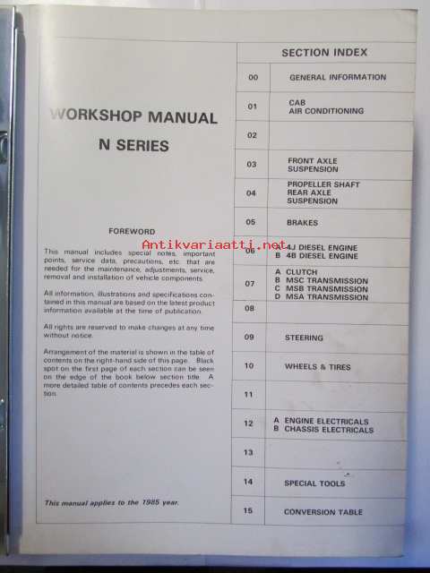 Isuzu Light-duty vehicle Workshop manual 1985 --> N series No.LG-54G