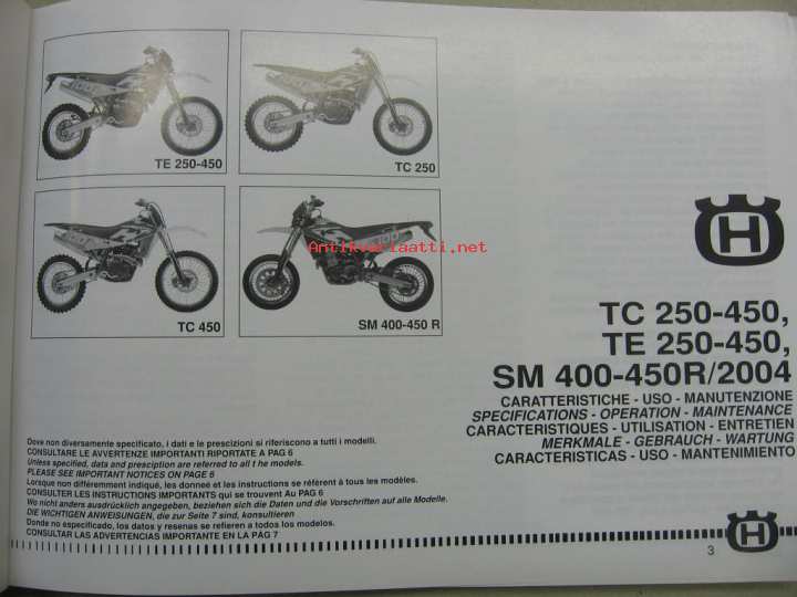 Husqvarna TE-TC 250, TE-TC 450, SM 400-450 R/2004 0wner´s manual -käyttöohjekirja