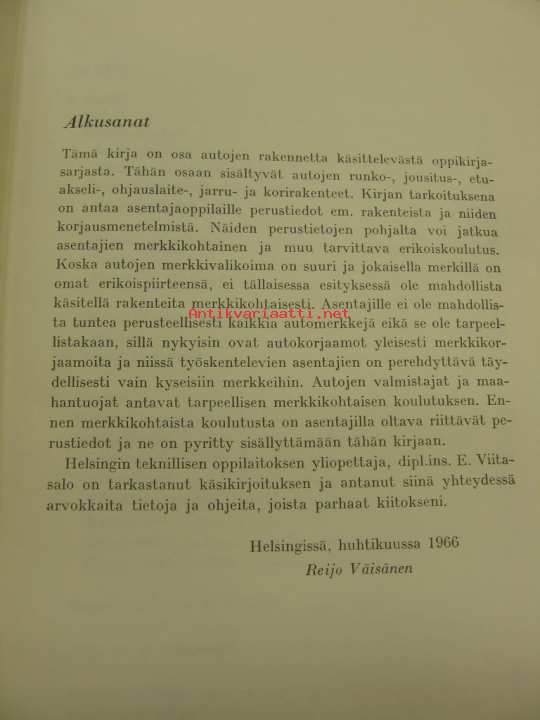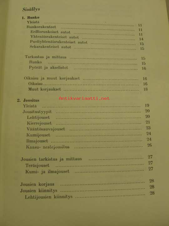Ammattienedistämislaitoksen ammattikirja nr 50. Perusteellinen esitys auton rakenteesta.