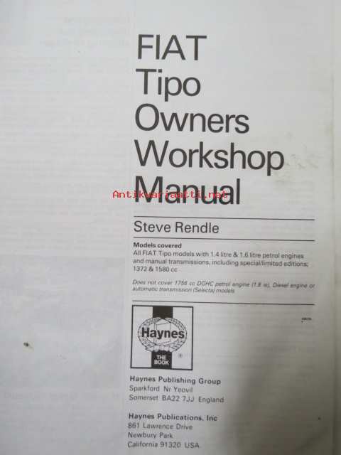 Fiat Tipo 1988 to1991, 1372cc, 1580cc. Owners workshop manual