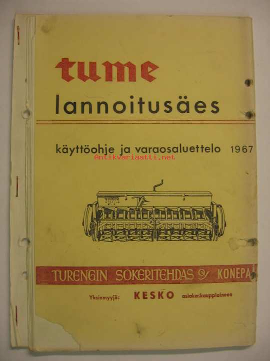 Tume lannoitusäes käyttöohje ja varaosaluettelo 1967