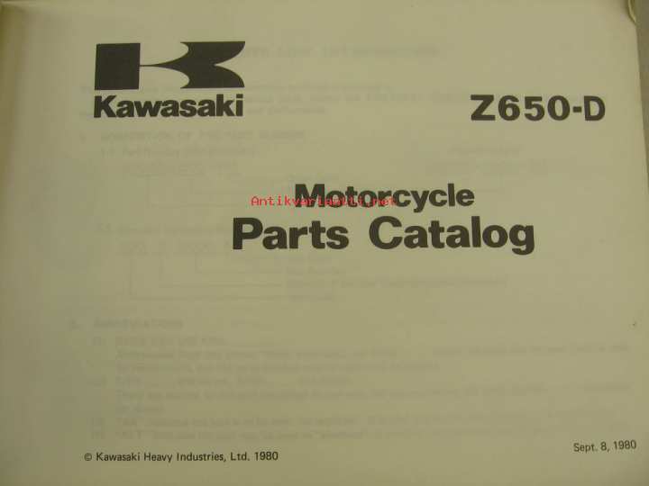 Kawasaki Z650-D Parts Catalog European market -varaosaluettelo