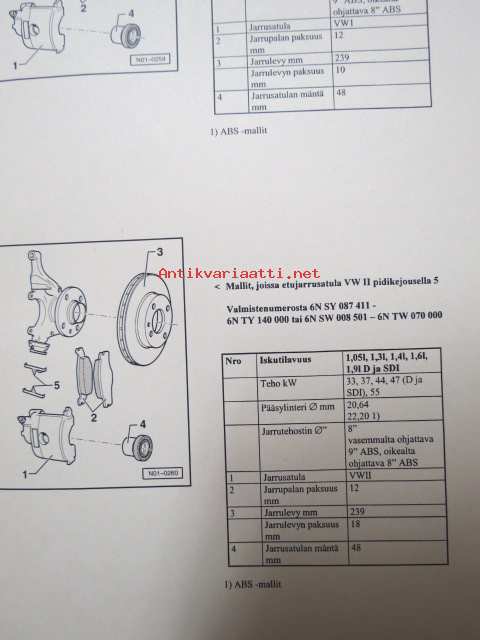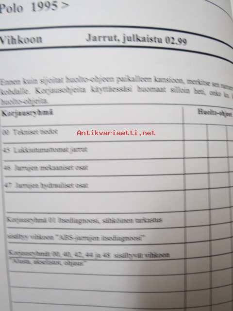 Korjausohjeiden Volkswagen Polo 1995>,Jarrut