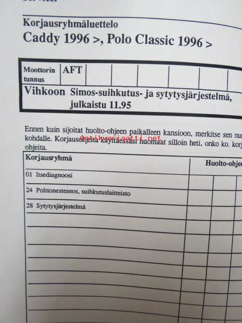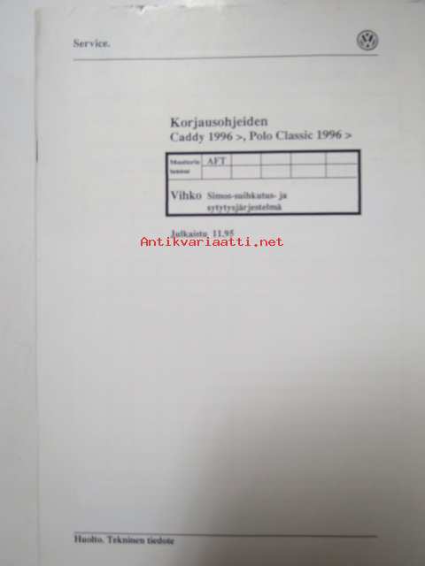 Korjausohjeiden Volkswagen Caddy 1996> Polo Classic 1996>, Simos-suihkutus- ja sytytysjärjestelmä moottorin tunnukset AFT.