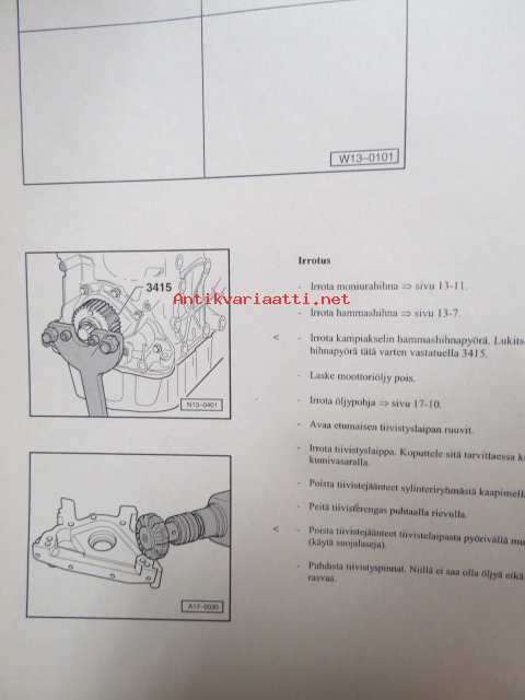 Korjausohjeiden Volkswagen Caddy 1996> Polo Classic 1996>, Polo Variant 1998>, 4-syl.suihkutusmoottori- ja mekaaniset osat (1.6 L MOOTT., moottorin tunnukset AEH,