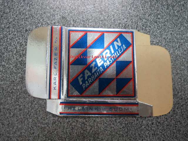 Fazer Parhaita pastilleja / Fazerin Pastiller -käyttämätön, tyhjä karamelliaski 1930-luvulta