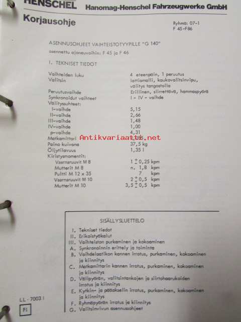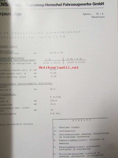 Mercedes-Benz, Hanomag henschel, korjauskäsikirja - kevytkuorma-autot ja pakettiautot R-LKW-2, Suomeksi, Tanskaksi ja Ruotsiksi