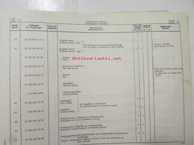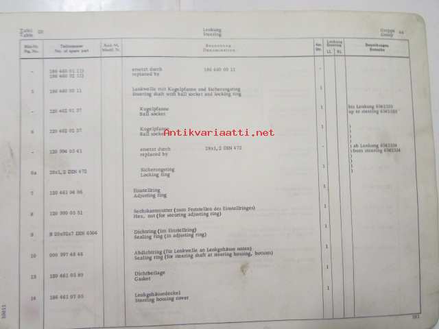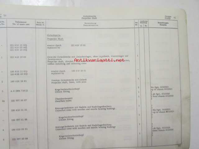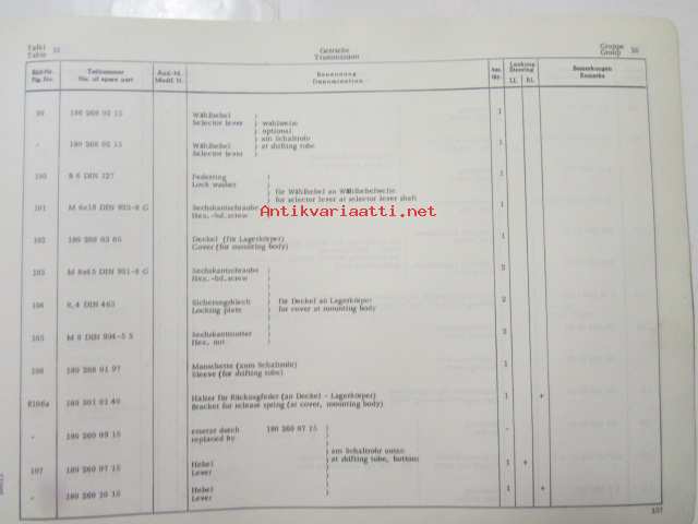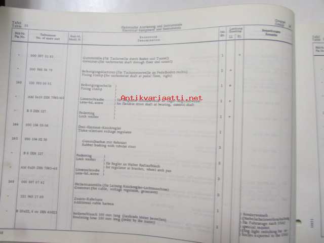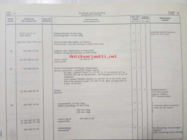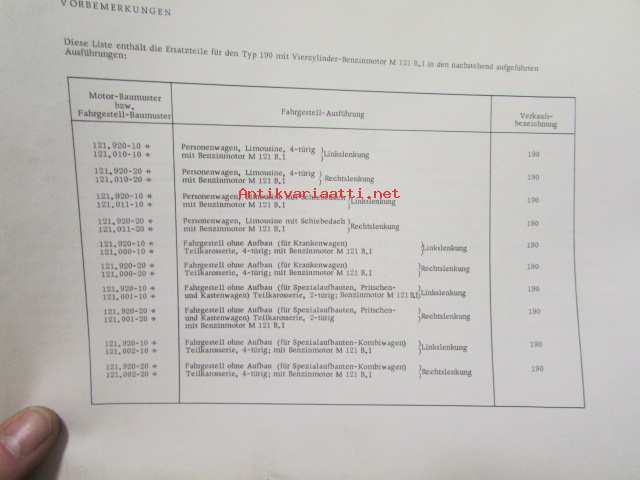 Mercedes -Benz Type 190, 10 011, Ersatzteilliste ausgabe C, Stand von juni 1959 - Spare parts list edition C, As per june 1959, subject to modifications