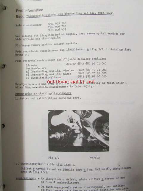 Audi Workshop manual 1968 (käsittää osat AT, V, B/Rä, L, K, Ap, Ku, E; katso kuvasta 2 yksilöllisemmät tiedot tiedot.