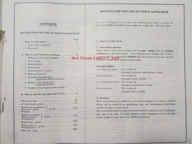 Honda Accord 4-door Sedan, Type SJ-820/830 SJ-342/343/542/543, Parts Catalogue, model 1979-80.