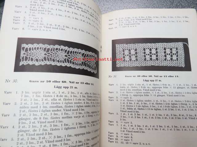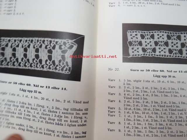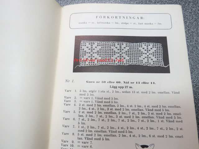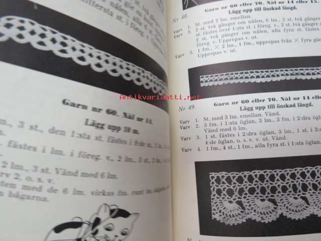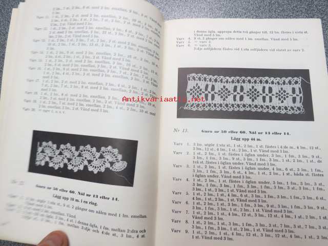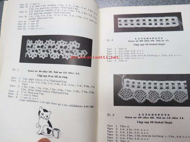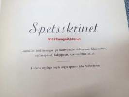Spets-skrinet - innehåller beskrivningar på handvirkade dukspetsar, lakanspetsar, mellanspetsar, babyspetsar, spetstabletter m.m. - I denna upplaga ingår några
