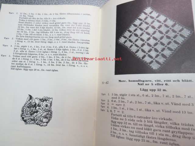 Spets-skrinet - innehåller beskrivningar på handvirkade dukspetsar, lakanspetsar, mellanspetsar, babyspetsar, spetstabletter m.m. - I denna upplaga ingår några spetsar från Virkvännen