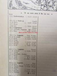 Lauluja - 1928, perinteinen musta vahakantinen vihko, johon kirjoitettu laulujen sanoja