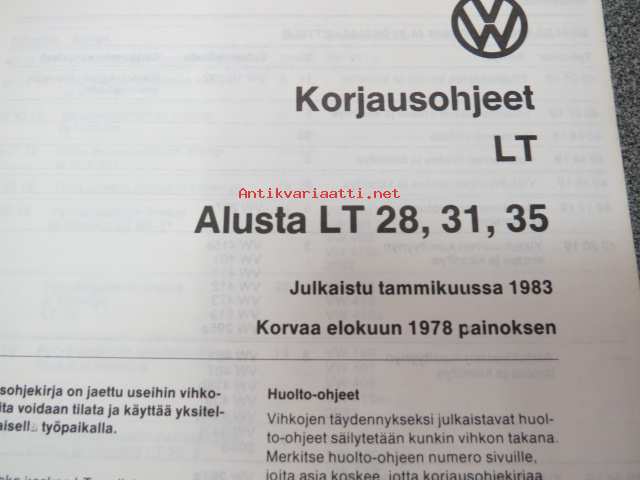 Volkswagen LT 28, 31, 35 Alusta, julkaistu tammikuussa 1983 -korjaamokirjasarjan osa